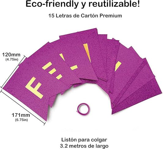 Banner Feliz Cumpleaños Glitter Morado con Letras en Dorado