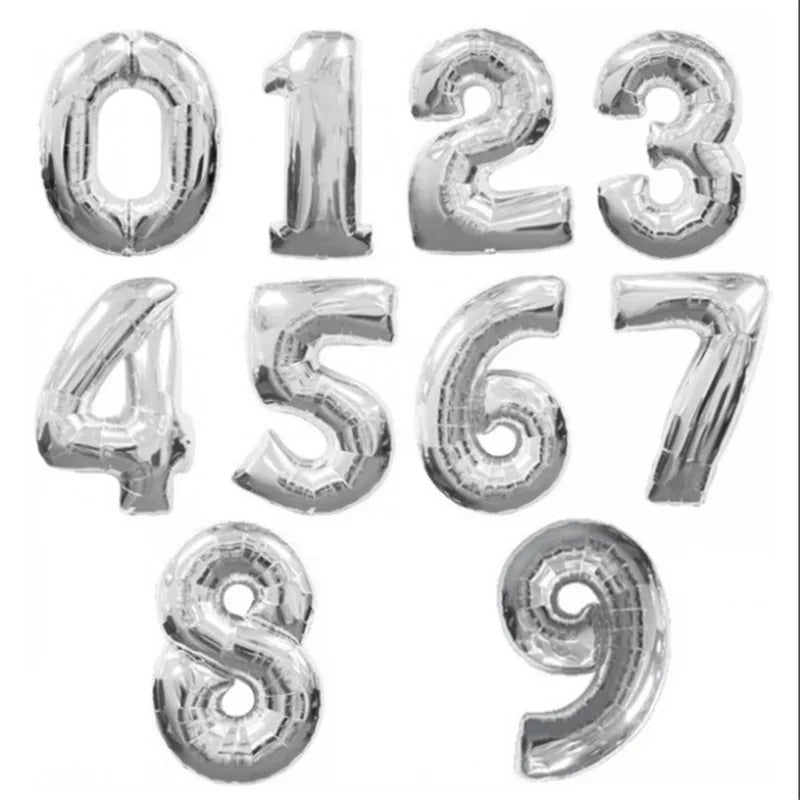 Globo Número Metalizado Plata