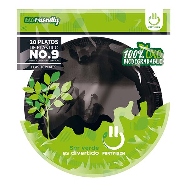 Plato 9' Negro 20 piezas Party Is On